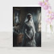 Uma noiva fantasmagórica com uma estranha refecção no espelho atrás dela cria uma assombrante e assustadora carta de Halloween. Gótico e assustador!