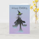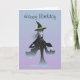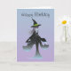 Cartão de aniversário com uma adorável bruxa de manga / anime em um bonitinho chapéu preto de bruxa e um vestido preto longo em um fundo azul turquesa e roxo. Personalize e personalize a papelaria nesta loja clicando no botão laranja 'personalizar'. Você pode adicionar algum texto ou mudar a imagem para design de seu próprio presente ou tratar para alguém especial.