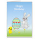 Coelhinho de Páscoa multicolor, Cartão de Aniversário Feliz de Ovo. O texto pode ser personalizado.