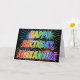 Este design de cartões de saudação de aniversário multicolorido e divertido apresenta a mensagem "FELIZ BIRTHDAY" e o nome comum "ALEXANDRA" com as letras que têm um espectro colorido de arco-íris como um padrão de colorir gradiente. O plano de fundo da frente também apresenta um padrão inspirado em fogos de artifício coloridos. O dentro apresenta uma mensagem de saudação personalizada, ou talvez possa ser apagado e deixado vazio se uma mensagem for escrita manualmente. Um cartão de aniversário como este pode ser uma maneira divertida de reconhecer o aniversário de alguém chamado Alexandra. [~Z0000350]