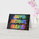 Este vibrante, multicolorido e divertido design de saudação de aniversário apresenta a mensagem "FELIZ ANIVERSÁRIO" e o nome comum "BIANCA" com as letras que têm um espectro colorido do arco-íris como um padrão de colorir gradiente. O plano de fundo da frente também apresenta um padrão colorido inspirado pela aparência de fogos de artifício que explodem. O dentro apresenta uma mensagem de saudação personalizada, ou talvez possa ser apagado e deixado o vazio se uma mensagem for escrita manualmente. Um cartão de boas-vindas como este pode ser uma maneira divertida de celebrar o aniversário de alguém chamado Bianca. [~Z0000350]