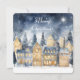 Feliz Cartão de Nome de Foto da Família Village Star de Natal. Esta bela carta de meia-noite apresenta um céu noturno maravilhoso sobre uma vila vintage, com "Feliz Natal" exibido elegantemente na frente. O verso pode ser personalizado com sua foto de família favorita, nomes e ano, fazer que seja uma marca única. Suas matizes escuras e estreladas e detalhes pacíficos inspirados na vila adicionam um toque mágico à sua oferta de férias.