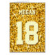 Cartão de saudação com um design moderno impresso com estrelas espalhadas sobre um padrão estilizado de "aparência sequencial" e sua escolha de nome e idade escrita em tons de amarelo e marrom. Um design personalizável para você personalizar com seu próprio texto, imagens e ideias. Por favor, note que esta é uma imagem digital impressa. O produto não brilha ou contém cinzas ou sequências reais.