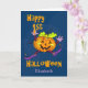 Uma garotinha vai rir quando ela vir esta deliciosa abóbora a dançar através de uma saudação de Halloween de 1rua, em seus calçados, luvas e leggings violetas? O texto pode ser personalizado no modelo fornecido. A adição do nome da criança faz deste um cartão de vigilância muito especial.