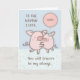 Surpreenda sua doce esposa no seu aniversário de casamento, dando-lhe este cartão adorável que mostra dois porcos bonitos no cobrir. No balão você pode personalizar o cartão com o nome dela.