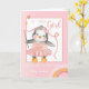 É uma garota, a carta de parabéns "Bem-vindos ao Mundo" para os avós no nascimento de sua neta tem um adorável pinguim vintage girando uma fita. Personalize com o nome da menina nova.