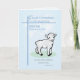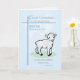 Para seu neto excelente no batismo dele, este cartão é personalizável com seu nome e data que ele é batizado. Um cordeiro branco doce com sombreamento de cinza é rodeado por azul claro com nuvens no fundo. Uma linha branca suave enquadra a imagem e a mensagem.