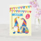 Um cartão de aniversário divertido para você personalizar com o nome e a idade do destinatário. O cobrir da frente tem dois gnomos bonitos, um segurando uma faixa com espaço para você adicionar o nome e o outro segurando um balão vermelho onde você pode adicionar a idade. Os gnomos baseiam-se no "tomo" do folclore escandinavo, o macho com barba branca longa e a fêmea com palhaços louras grossas, ou tranças. Ambos têm chapéus muito altos que cobrir seus olhos; eles têm narizes grandes e cada um deles é um carregando de presentes, assim como o banner e o balão. O "Parabéns" está escrito em letras brancas no beliche colorido no topo e a cor de fundo é um amarelo muito pálido e brilhante. A mensagem dentro é apenas uma sugestão e você pode alterá-la facilmente ou apagá-la se desejar.