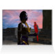 A preto tatuou a beleza com joias elegantes de ouro com seu papagaio vermelho colorido, sob o céu cósmico rosa com planetas azuis.Moldura de animação artística do filme de ficção científica de animação Hyperion World 3d.