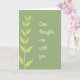 Simples e sincero cartão de compaixão não religiosa com o moderno design de bambu em cores verdes sensuais. A frente diz, "Nossos pensamentos estão com você" em uma fonte de tipo script manuscrito. O texto do dentro, que você pode editar se quiser, diz, "Nossa mais profunda simpatia durante esse período difícil." Um cartão de condolências secular, adequado para muitos tipos diferentes de pessoas e circunstâncias.