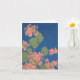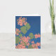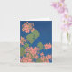 Uma placa com uma tela impressa design de gerânios cor-de-rosa de salmão em fundo azul profundo. Dentro de vazio para a sua própria mensagem.