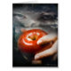 O noturno caracteriza uma floresta escura, uns olhos de fascínio, e uma maçã vermelha brilhante realizada na mão de uma mulher.