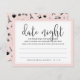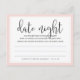 Deixem os chás de panela compartilharem suas ideias noturnas favoritas para o casal feliz, com esses cartões doces. O pastel chic blush cor-de-rosa e design preto apresenta "data noite" em letras modernas de escrita de caligrafia e um poema curto que instrui os hóspedes sobre o que fazer. Personalize com o nome e a data do chá da noiva e coloque uma pilha na entrada do evento, passe-as ou deixe uma em cada lugar. Cartões revertem para nosso romance romântico e mesquinho de Paris, coordenando lindamente com nossos convites e acessórios. Faz uma bela manutenção para a noiva, e um alternativo excelente para o pote noturno da noite!