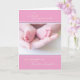 Um belo cartão cor-de-rosa mostrando os pés dos bebês numa mão. Carteira sensível e doce para celebrar com sua avó excelente no nascimento da neta excelente dela!