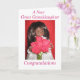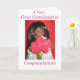 Bonequinha negra linda segurando flores com a mensagem "Um novo excelente Parabéns da neta"