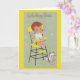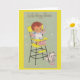 Vintage / Retro Novo Cartão de Saudação Baby. Adorável bebê em uma cadeira alta vintage, sentado ao lado de um gatinho adorável! Aos Pais Felizes!