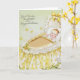 Envie seus parabéns com o cartão de parabéns de bebês vintage. A imagem apresenta um doce bebê em um belo berço com um arco amarelo, satin e detalhes florais. O rosto e os olhos do bebê são muito expressivos e maravilhosamente pintados. Você pode facilmente digitar seus próprios parabéns e nome do bebê. Você pode editar ainda mais o estilo, a cor, o tamanho e o posicionamento da fonte, se quiser.