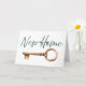 Deseje boa sorte à família ou aos amigos na sua nova casa com esta carta encantadora e simples. O design apresenta palavras 'Nova Casa' num elegante roteiro verde e um design de chave de porta clássico. A mensagem dentro é "Boa sorte na sua nova casa", e pode ser personalizada.