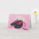 Buquê de margarida em tênis de menina com fundo de gingham rosa para novos parabéns de menina.