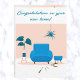 Este cartão bonito ilustra uma sala de estar com ferramentas no chão. No dentro está uma ilustração de uma aranha pendurada e um verso. O texto na frente e no dentro é editável, então vá em frente e altere as mensagens, assim como o estilo, o tamanho e a cor da fonte. Aproveite a sua nova placa de novos Parabéns domésticos editáveis!