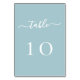 Um fundo azul empoeirado decorado. Texto branco. Personalize e adicione seus números de tabela. Adicione seus números um a um.