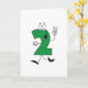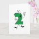Um grande número verde 2 com olhos, braços e pernas em T-shirts com segundo aniversário Número, canecas, cartões, adesivos, guardas e outros segundos aniversários.