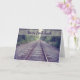 Personalize a mensagem interior deste cartão inspiracional usando sua própria mensagem de encorajamento. A fotografia do cobrir, que apresenta um toque suave, retrata trilhas de trem vazias correndo até a distância e flanqueadas de ambos os lados por uma folhagem verde e exuberante. As palavras "Nunca olhe para trás" são impressas em índigo profundo usando uma escrita moderna. A mensagem interior diz "Nunca olhe para trás. Você não vai assim." mas pode ser mudado usando o modelo fácil fornecido.