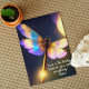 Belo cartão de saudação apresenta libélulas iridescentes e douradas com a cobertura de texto de aspas "Love is a bridge" de Rumi. Imagem criada usando o software AI
