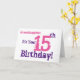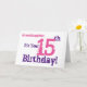 Cartão O aniversário de 15 da neta em roxo, rosa.
