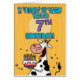 " Eu "reuno-o" era seu 7o aniversário!" vaca de b-dia do divertimento que guardara um cartão do bolo de aniversário.