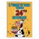 " Eu "reuno-o" era seu 24o aniversário!" vaca de b-dia do divertimento que guardara um cartão do bolo de aniversário.