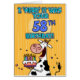 " Eu "reuno-o" era seu 58th aniversário!" vaca de b-dia do divertimento que guardara um cartão do bolo de aniversário.