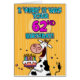 " Eu "reuno-o" era seu 62nd aniversário!" vaca de b-dia do divertimento que guardara um cartão do bolo de aniversário.