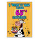 " Eu "reuno-o" era seu 65th aniversário!" vaca de b-dia do divertimento que guardara um cartão do bolo de aniversário.
