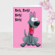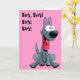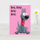 Cachorro bonito, de olhos grandes na frente, assim como dentro deste cartão. "Latido!" no topo da frente e "Isso significa "ir bem rápido"" dentro.