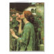 Uma jovem de cabelo vermelho escuro chega em direção a uma rosa escalada para cheirar a fragrância. Belas artes do século XIX por John William Waterhouse.