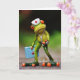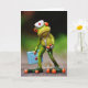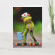 Um sapo vestido no uniforme de um doutor é mostrado na parte dianteira deste cartão quando, o texto no interior ler, "obtem bem logo"