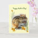 Este cartão do dia das mães caracteriza um chipmunk pequeno bonito que esteja enchendo seus mordentes carnudos tão rapidamente como pode em um dia de primavera. Tem uma listra preto e branco abaixo de seu para trás, branco em torno dos olhos, da pele marrom dourada, e de um nariz cor-de-rosa. O bicho pequeno doce é cercado pela grama verde e por lírios amarelos. Igualmente aparece dentro do cartão junto com mais lírios. O texto pode ser personalizado para serir suas necessidades.