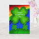 Um design colorido e brilhante do dia de Patrick de santo que diga "o dia de St Patrick feliz" em um trevo. O design tem um arco-íris no fundo.