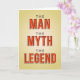 Diga Feliz Aniversário com esta divertida carta de poster de tipografia, estilo retrô, com a mensagem "O HOMEM O MITO A LEGENDA". As letras aparecem em um efeito tipográfico desajustado, difundido digitalmente, sobre fundo bronzeado e texturizado. O Dentro pode ser personalizado com uma mensagem de sua escolha, mas tem essa mensagem de marcador: "É definitivamente VOCÊ, Pai. Você é forte, corajoso, confiável, trabalhadora em duro, e sábio. Você dá, apoia, ensina, ajuda e lidera por exemplo. Que a lenda épica que é você continue por muitos anos. FELIZ ANIVERSÁRIO! NOTA: este design usa um tipo texturizado "DISTRESED-STYLE" no cobrir frontal. O ROUGH TEXTURE é um efeito intencional de design e NÃO é um erro de impressão.