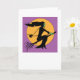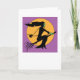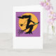 Cartão do Dia das Bruxas - bruxa no vôo do broomstick contra a lua