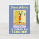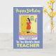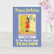Um cartão de aniversário para o melhor professor do mundo! Fora de um quarto, uma mãe diz, "Você tem que ir para a escola, e isso é final".