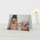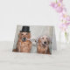 Este cartão mostra dois ouros vestidos de noiva e noiva. Cada um segurando uma extremidade de uma corda que está amarrando um nó em forma de coração no meio. Isto representa o amor compartilhado entre o casal casado.