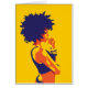 Mulher de Afrocentric em cores brilhantes que pensa sobre seu próximo passo.