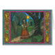 Esta imagem colorida mostra um shaman que bate seu cilindro enquanto em torno de seus fada-povos e de outras criaturas vai aproximadamente vidas normais, a imagem central é flanqueada por duas fileiras dos dragões e esta é guardarada toda com dentro uma árvore de vida celta de repetição