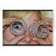 Uma foto de uma menina loira espreitando através de anéis de guardanapo cor-de-rosa e brancos é o assunto do meu cartão "EYE Obrigado".