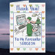 Cirurgião lendo instruções em um monitor. Personalize com seus próprios detalhes e mensagem