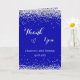 Um fundo azul real, decorado com falso confete prateado. Dentro: 1rua das suas fotos, tamanho vertical. Sua nota de agradecimento. Traseiro: segundo das suas fotos, tamanho da paisagem.