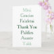 Este cartão oferece um obrigado enriquecedor em sete idiomas diferentes.