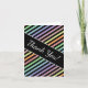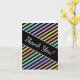 Este design de placa do obrigado apresenta um padrão de linhas (ou listras) coloridas com várias cores pastel, com linhas pretas entre elas. Ele também apresenta a mensagem "Obrigado!" na frente, junto com uma mensagem personalizada de obrigados no dentro. Pode ser usado para mostrar gratidão a alguém que tenha participado de um casamento, de um funeral, de uma formatura ou de algum outro evento.